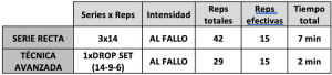 Mi TOP 3 técnicas avanzadas sería: Rest Pause – Drop Sets – MyoReps. De ellas, las MyoReps me parecen especialmente interesantes al NO ir al fallo en todas sus subseries. Aunque siempre dependerá de cada contexto, por ejemplo, las repeticiones parciales pueden ser interesantes en muchos casos, al igual que otras muchas técnicas.