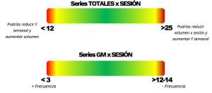 - Realizar entre 10-12 y 22-25 series TOTALES (sumando todos los grupos musculares trabajados) por sesión parece ser un rango adecuado.