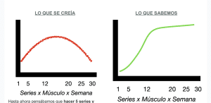 Hasta ahora pensábamos que hacer 5 series y hacer 30 era igual de «malo» y que había un “sweet spot” que hace que maximices las gains y si te pasas o te quedas corto, te quedarás flaco.